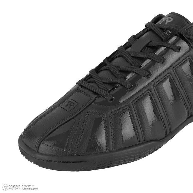 این کفش با طراحی ساده و شیک خود طرفدار های سبک خودش را دارد.کفش سالنی در رنگ کاملا مشکی ساده طراحی شده است. بند های به کار رفته در این کفش نیز به همان رنگ مشکی است.این محصول از نوع بدون ساق میباشد. سادگی این کار موجب شده چشم خیلی ها را به خودش بگیرد.دوخت های ظریف طور و تمیز این کفش فوتسال یکی از بهترین ویژگی های آن میباشد.رویه تمامی این کفش به صورت فوم هستش . زیره این کفش به حالت های گرد میباشد که نشان دهنده قدرت اصطکاک آن است. کفه این کفش بسیار قوی و مقاوم میباشد، به طوری که در هنگام دویدن و انجام فعالیت های ورزشی لیز نمیخورد. زیبای زیره ای این محصول همچنان خاص بوده و نشان دهنده طراحی قوی میباشد.حتما به این نکته توجه کنید که استفاده از کفش های سالنی در زمین خاکی و آسفالت درست نیست و باعت آسیب به محصول میشود .